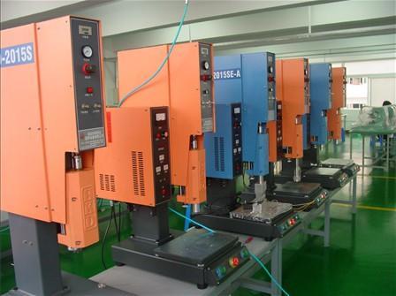 以超音波超高頻率振動的焊頭(HORN),在適度的壓力下使兩塊塑膠的接合面產生磨擦熱而瞬間熔融接合,并可達到完全水密及氣密的效果。