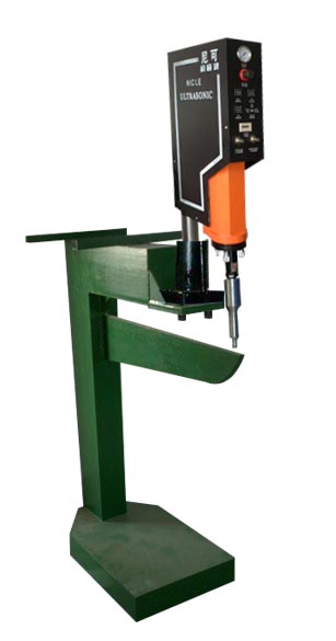 以超音波超高頻率的音波振動,借著焊頭(HORN)的傳導及適當的壓力,瞬間將金屬零件(如螺母、螺桿)等擠入預留的塑膠孔內,并固定在設定深度。